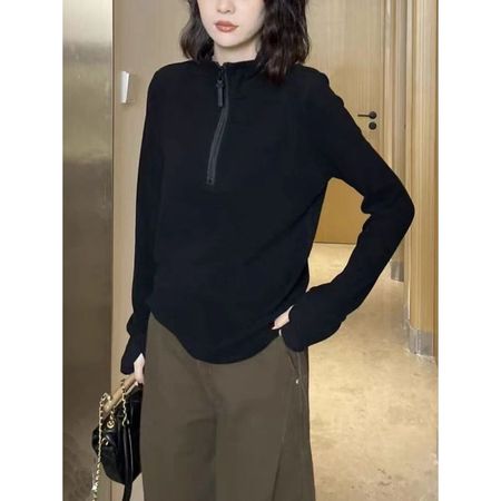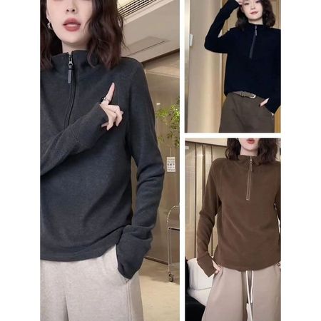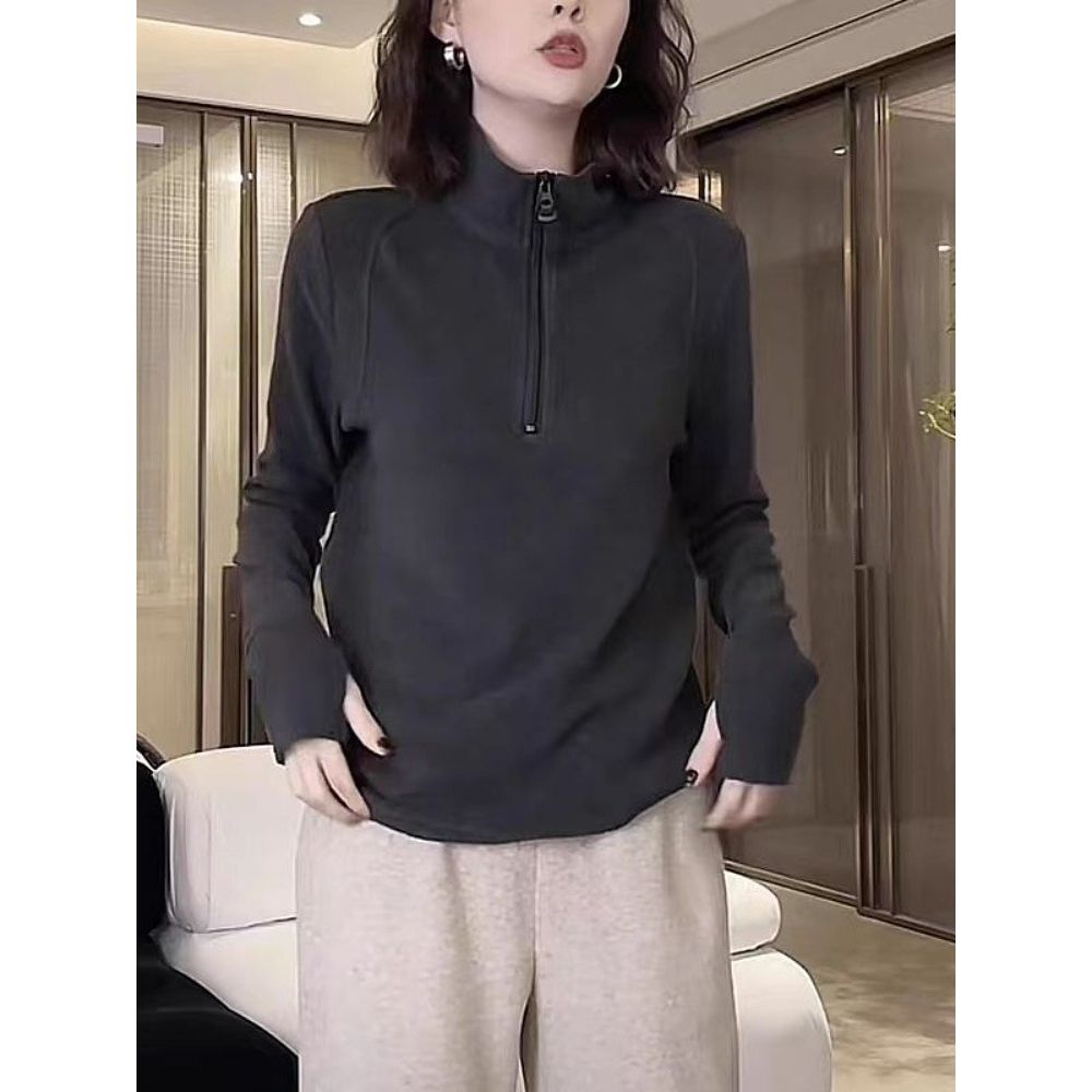 Half-Zip Sweatshirt Women's Velvet Thickened Bottoming Shirt Top
