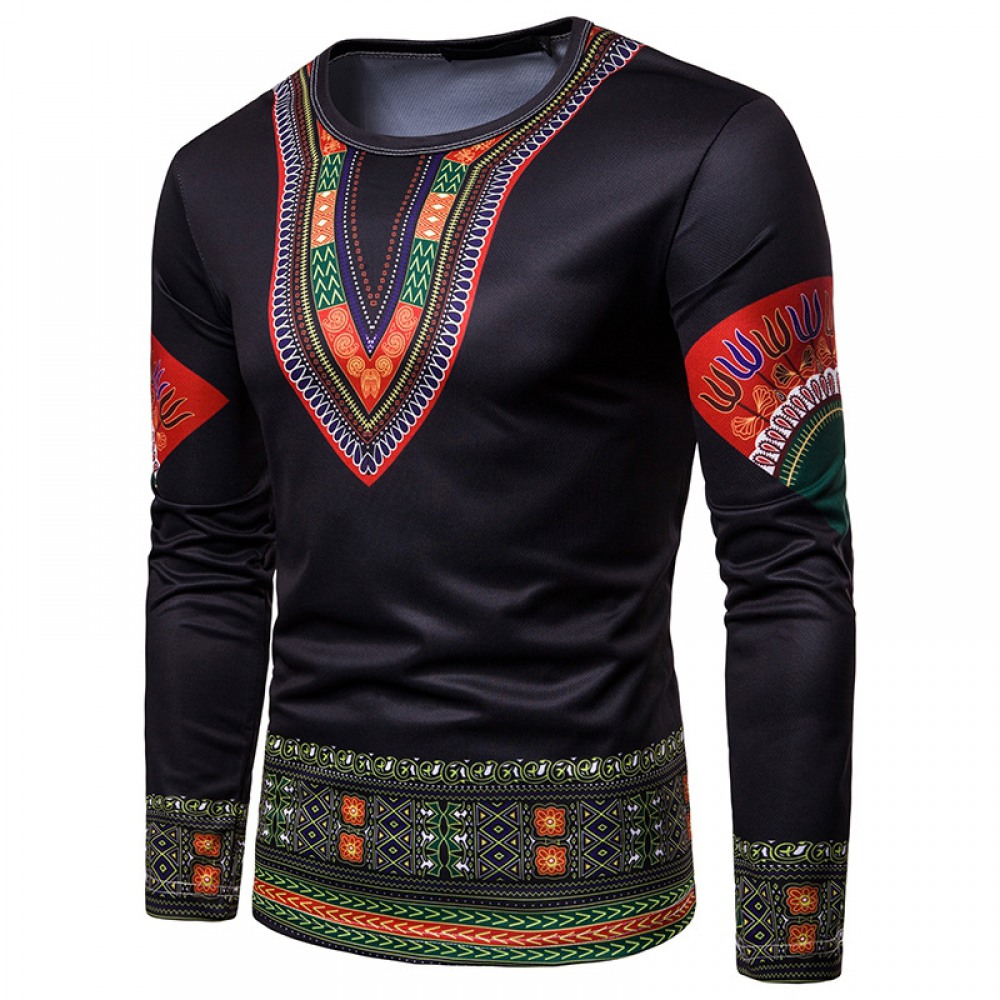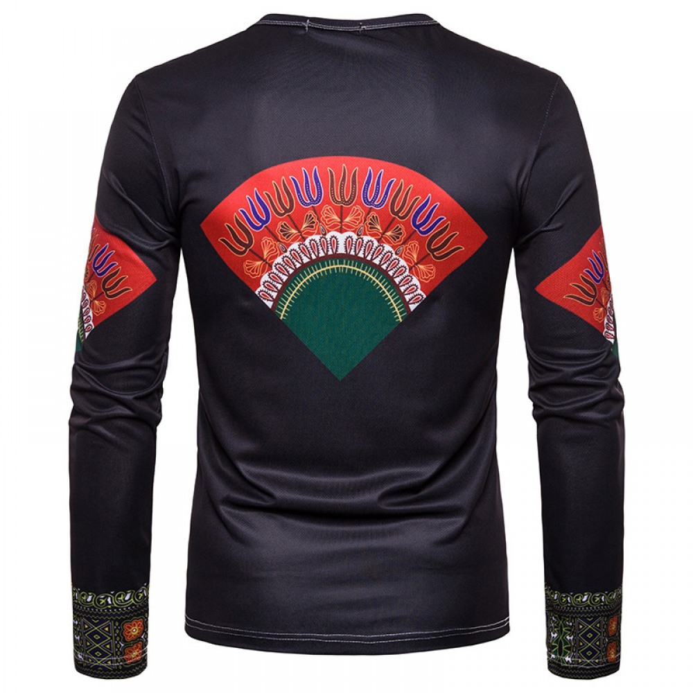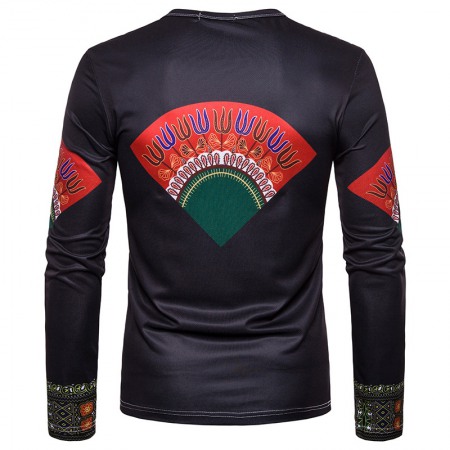 Men's Celebrity Style Printing Men's Round Neck Long-Sleeved T-Shirt