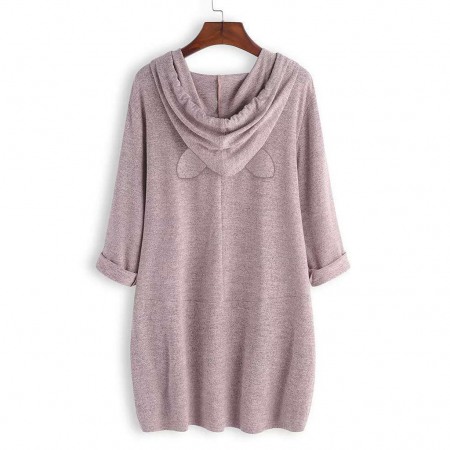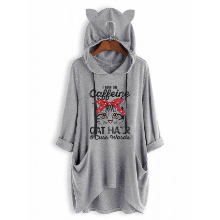 Mid-Sleeve Hooded Loose T-Shirt Large Size Ladies Printed Irregular Top