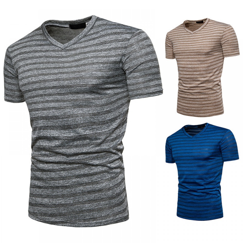 New Summer Men's Striped T-Shirt Mens Lapel Casual Short Sleeves