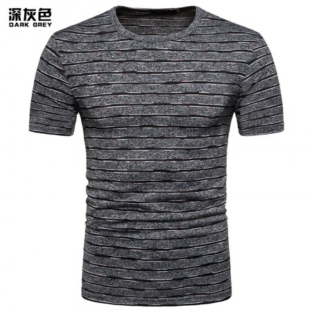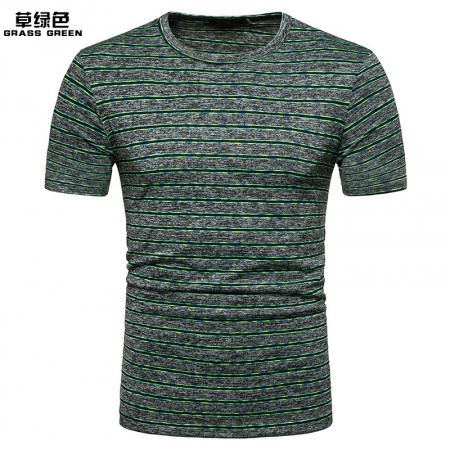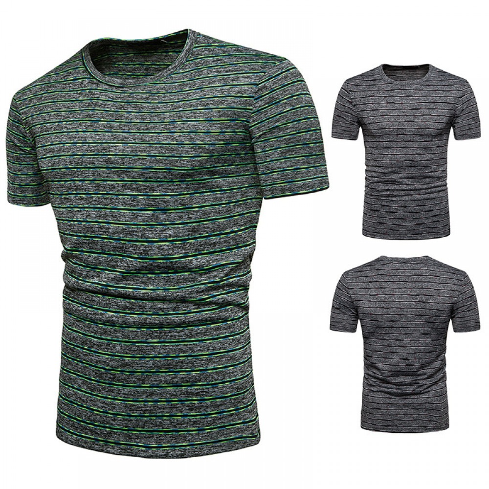 New Summer Men's Short-Sleeved T-Shirt Mens Contrast Striped Slim Casual T-Shirt
