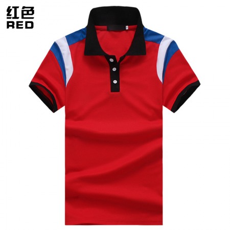 New Style Flat Men's Shoulder Color Matching Short Sleeve Polo