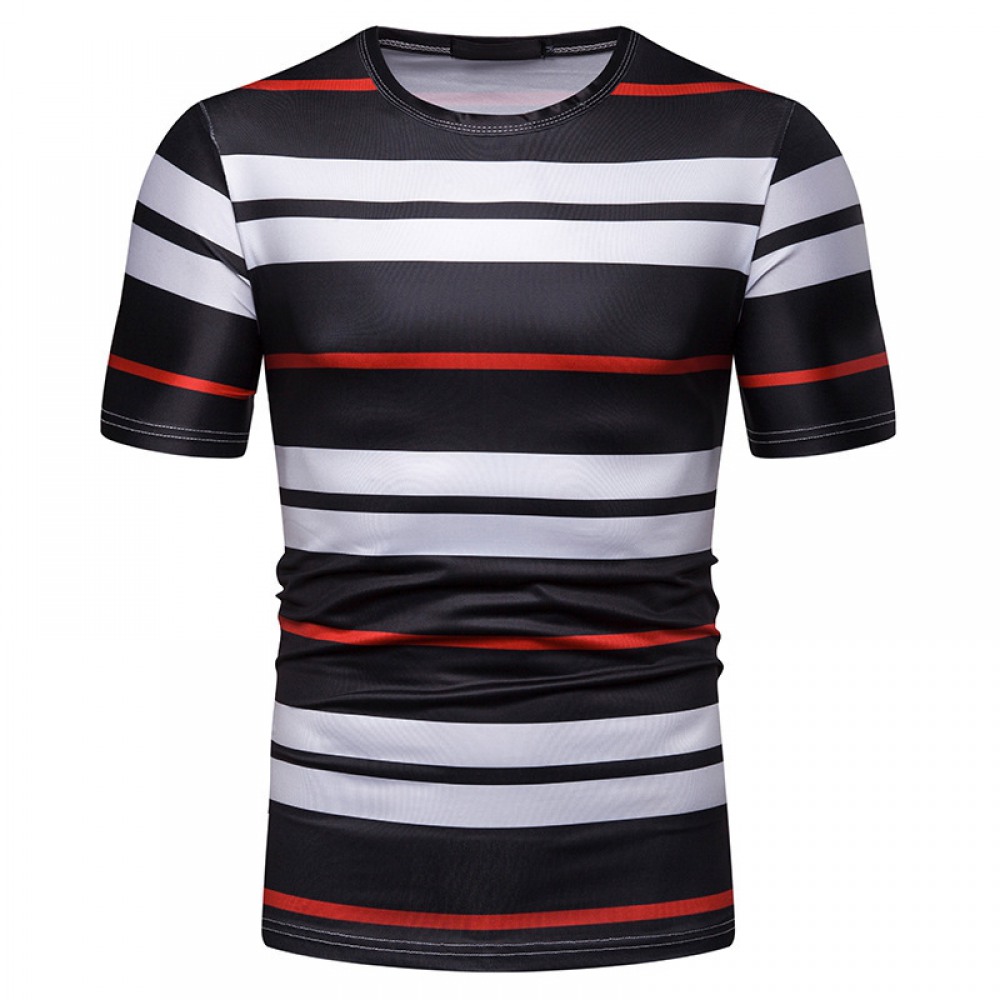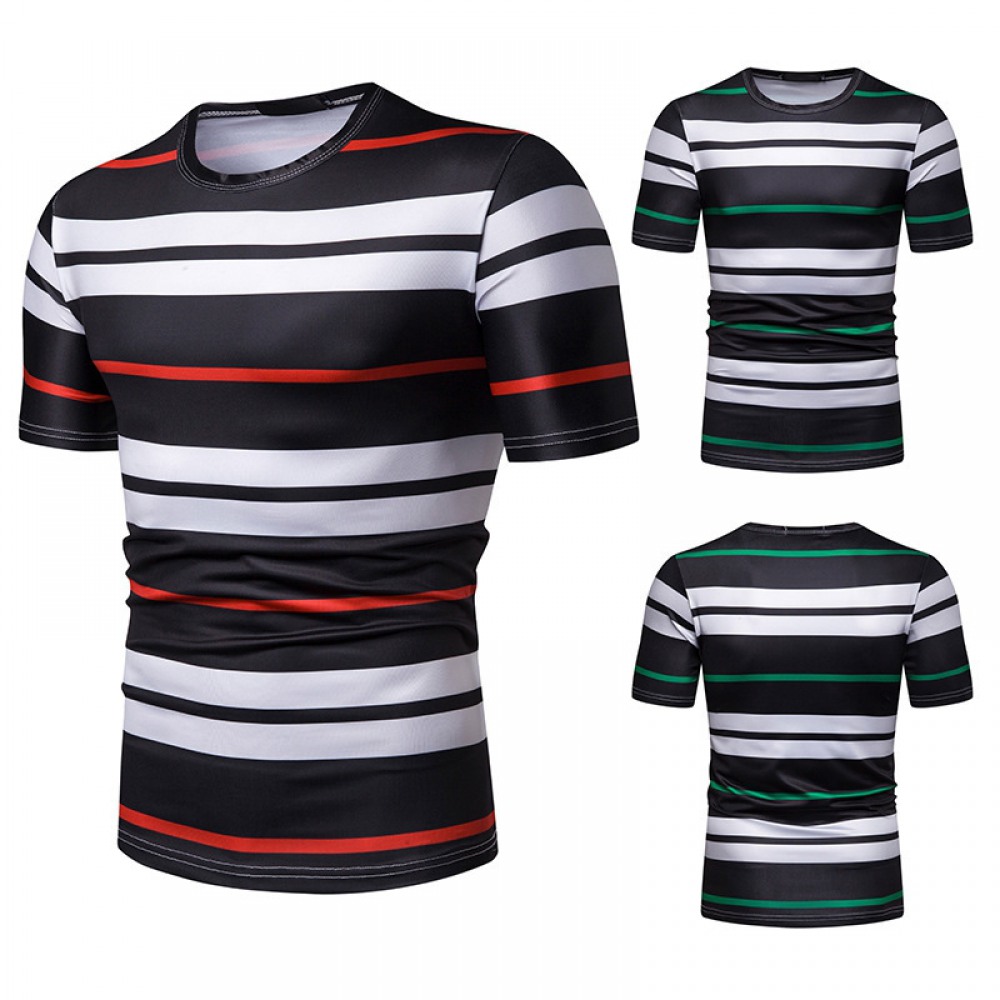 New Summer Men's Short-Sleeved T-Shirt Mens Contrast Striped Slim Casual T-Shirt