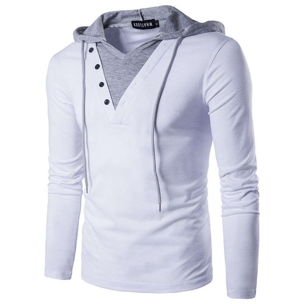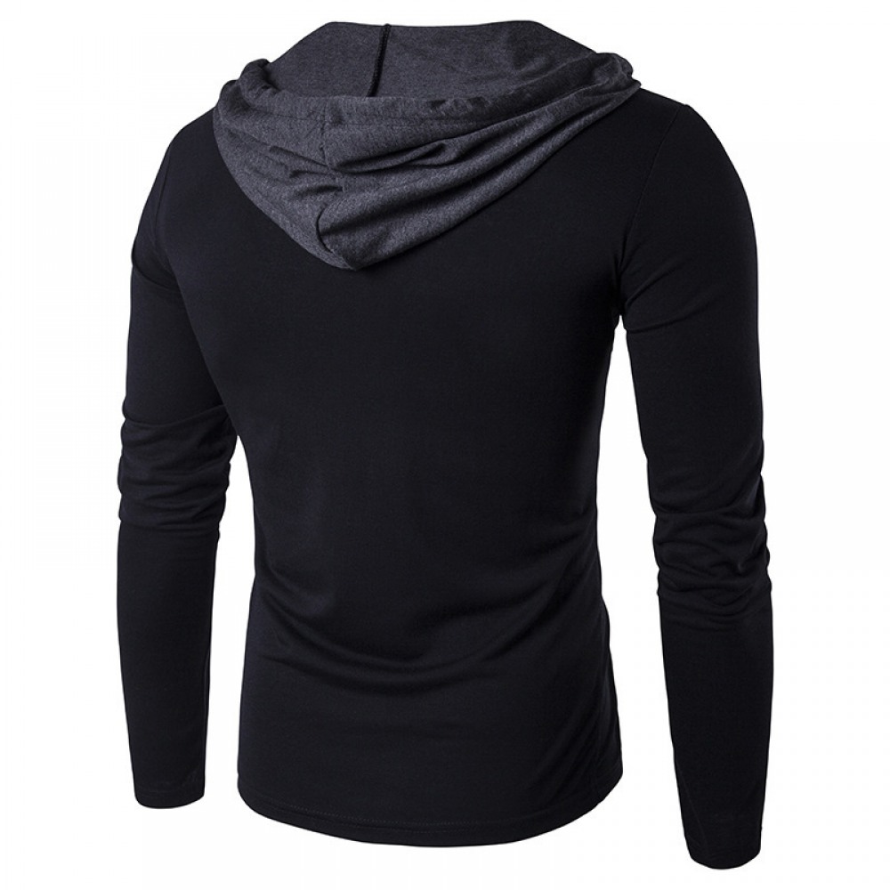 Personality Long-Sleeved Color Matching Hooded T-Shirt