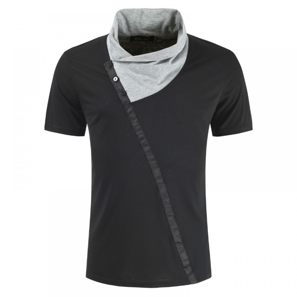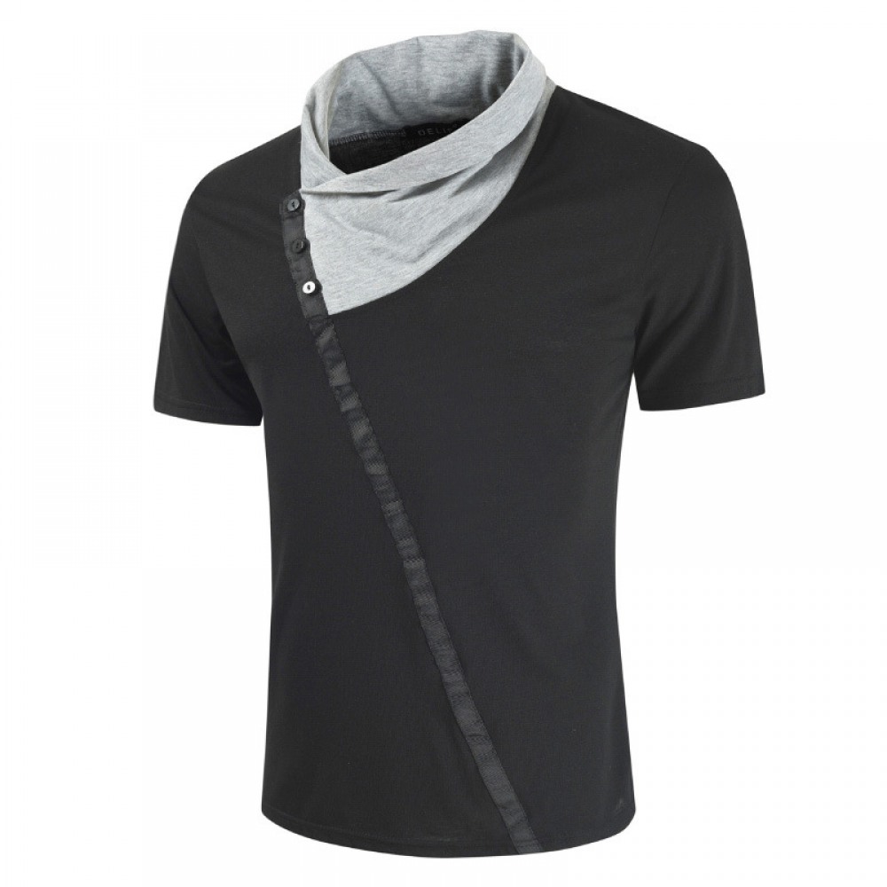 Personalized Casual Korean Slim Men's Summer T-Shirt Personality Stitching Lapel Fashion Casual Short-Sleeved T-Shirts
