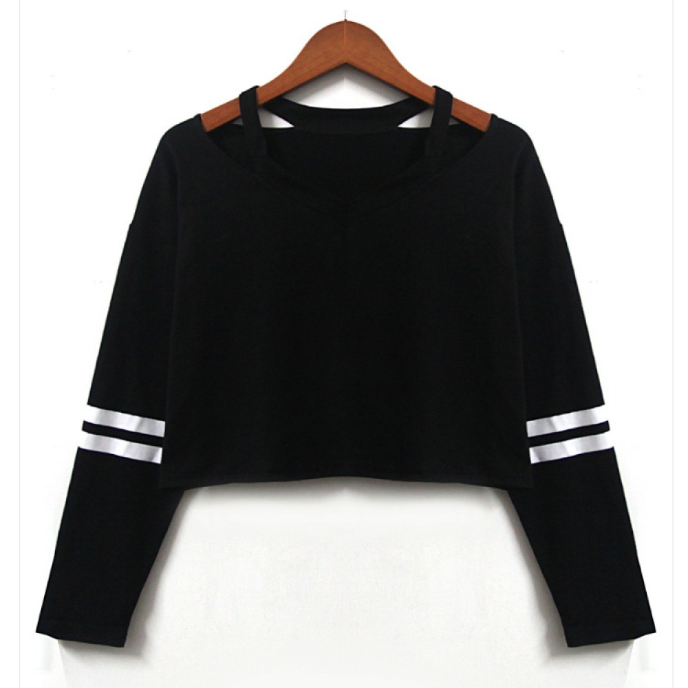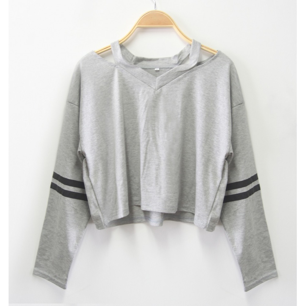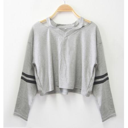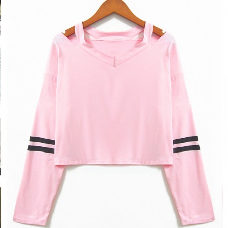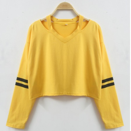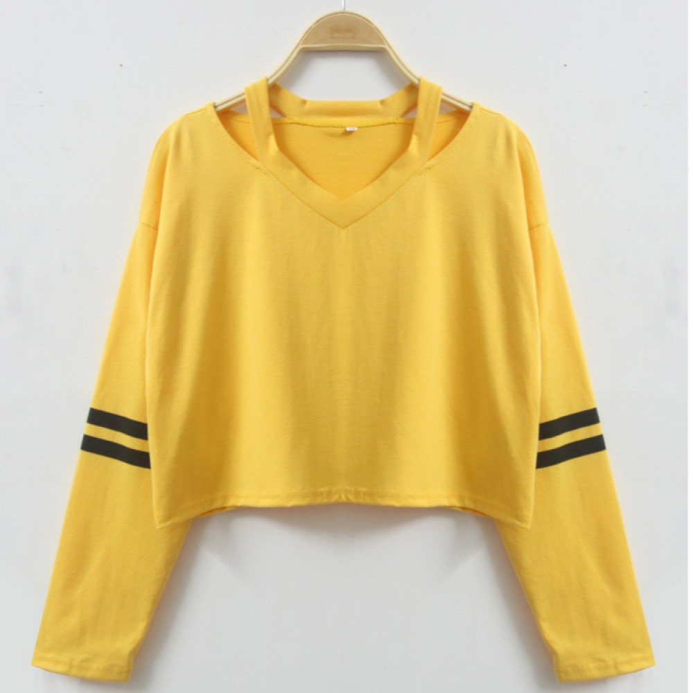 V-Neck Printing Short Long-Sleeved Multicolor T-Shirt
